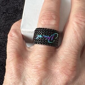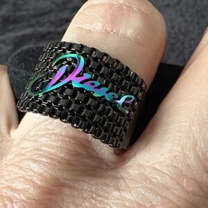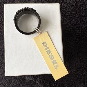 Diesel Iridescent Logo Black Chain Ring. Steel. Brand New, Never Worn.