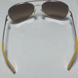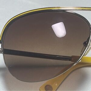 Chic aviator sunglasses with vibrant yellow frames. Brown lenses offer stylish sun protection. Preowned, excellent condition!