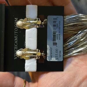 Vince Camuto Silvertone Pave Tassel Drop Clip on Earrings NWT ✨️