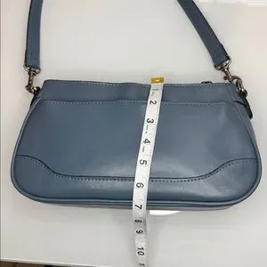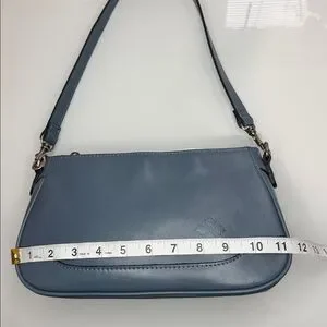 Patricia Nash Nova blue leather shoulder bag with brushed nickel hardware & detachable strap to convert into a clutch. The color is Mirage, which is a dusty blue color. Like new condition. Details and measurements in pics. Last pic is for fit.