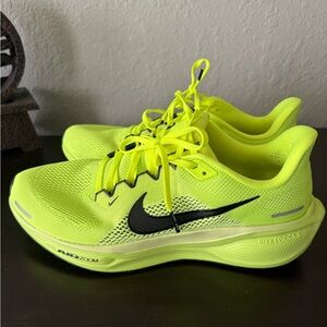 Vibrant lime green Nike Air Zoom shoes with sleek black swoosh. No runs put on them. Very lightly used.