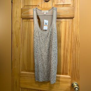 Bundle of 2 Michael Michael Kors sequin & bead embellished tanks green & beige sz S