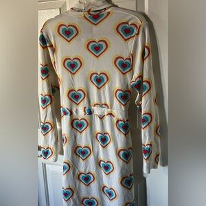 Color: White with multicolored heart design throughout - actual colors may vary slightly from photos due to lighting