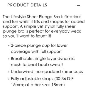 NEW Curvy Kate Lifestyle Plunge Sheer Mesh Black Bra Sz 38G (UK 38F) Lingerie