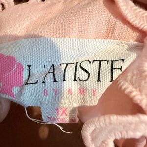 L’ATISTE by Amy Blush Pink Lace Trim Tiered Mini Dress 1X Fits M/L