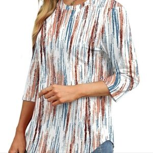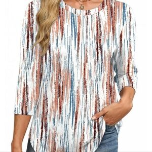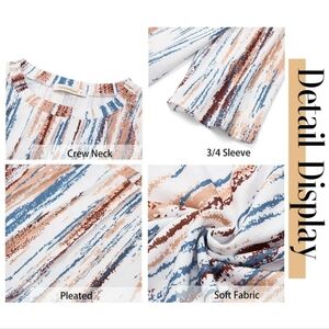 3/4 Sleeve Pleated Dressy Blouses Crew Neck Casual Tunic Tops NWOT