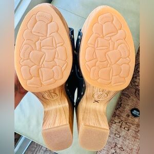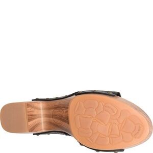 Beautiful hand-finished leathers and antiqued studs create a stunning design combo in our Darra slide. A charming center-stitch detail and woodgrain platform accent this signature look.