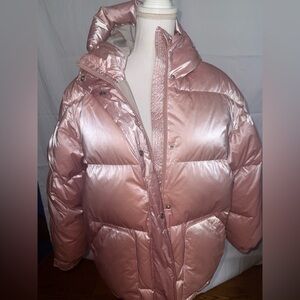 very good condition. There are a few dots at the bottom as shown. Hard to even see. I only noticed them when I was photographing this to Sell. This is a warm, cozy, oversized puffer.