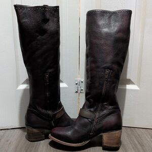 NEW Freebird Carson Leather Tall Boots Sz 11 Burgundy & Brown Wide Calf