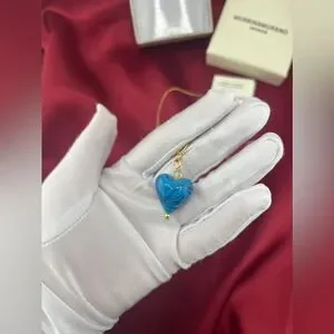 • Handcrafted Murano Glass: A beautifully sculpted blue heart pendant, showcasing the artistry of Venetian glassmakers.