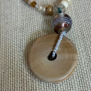 Elegant vintage Beaded Necklace with Tan and Cream Accents