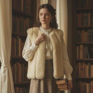 Super soft & comfy Y2K Bratz style light tan cream faux fur vest with zipper