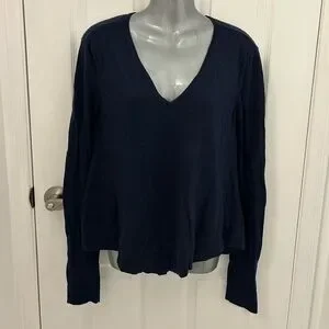 Soft knit top with long sleeves. Flares out and comes to point at front and back. Back is slightly longer than front. Excellent used condition. 70% wool, 20% silk and 10% cashmere, this top comes from the luxury brand Derek Lam. Gorgeous basic, this high quality piece will become a wardrobe staple. 18” pit to pit.