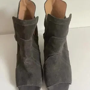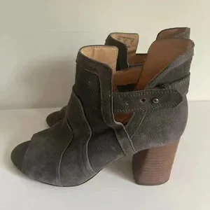 Joes Jeans 10 Gray Suede Cassia Blocked Heel Suede Bootie Boot Open Toe