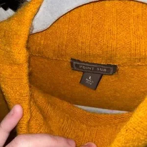 J Crew Point Sur mustard gold turtleneck sweater size large. Soft luxe knit blend 56 nylon 30 merino wool 10 alpaca 4 elastane for warmth and a little stretch. Cozy relaxed fit with ribbed cuffs and hem perfect for fall winter layering with jeans trousers or skirts. Excellent preowned condition.