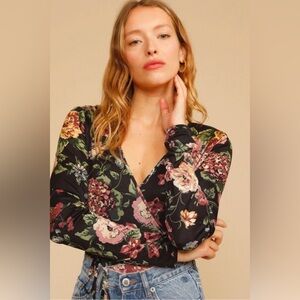Rouje Paris 2 pc Set: Sade Wrap Top & Caro Skirt in Jardin D'Atomne Noir 34/US2