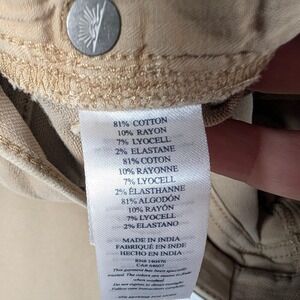 Material: 81 percent cotton, 10 percent rayon, 7 percent lyocell, 2 percent elastane as listed on interior content tag.