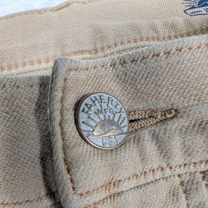 Faherty Jeans Mens 32x32 Beige Slim Straight Stretch Denim Pants Leather Patch