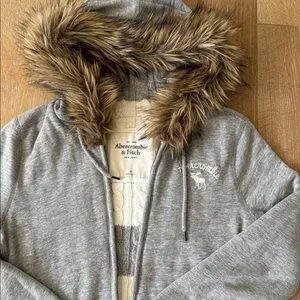 RARE Vintage Y2K Abercrombie & Fitch Fur Hood Moose Sweater Lined Hoodie M