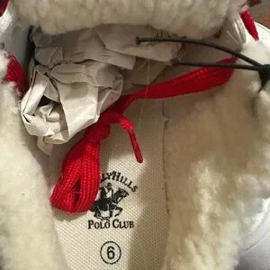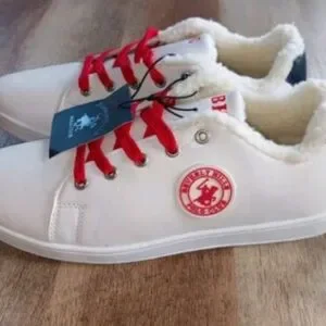 Step out in style with these brand new Beverly Hills Polo Club sneakers! These crisp white sneakers feature sporty red and blue accents, perfect for adding a pop of color to your casual looks. They come with the original tags, ensuring their pristine condition.