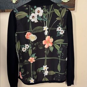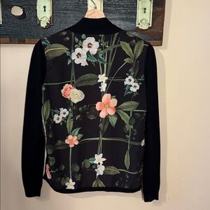 Ted Baker Secret Trellis Floral Back Open Front Black Cardigan Size 1