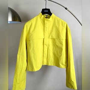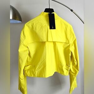 This stylish jacket in bright yellow is designed and crafted in small fashion houses in Italy.