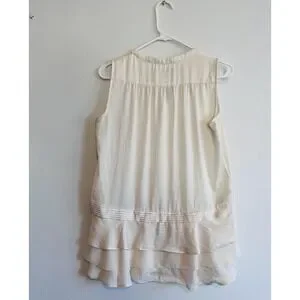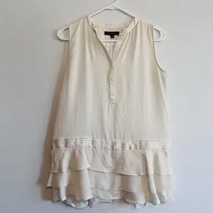 Banana Republic Blouse Womens XS White Sleeveless Henley Tiered Ruffle Tunic Top