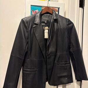 Elegant black blazer with a modern cut. Ideal for work or evening wear. Features a single-button closure and sleek lines.