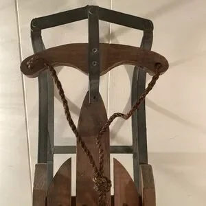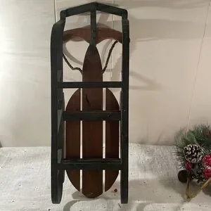 Vintage Wooden Green Painted Metal Quality Sled