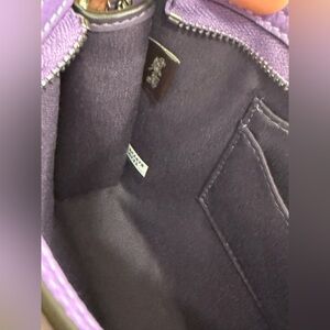 Chic Coach crossbody in soft lavender. Features sleek silver hardware. Ideal for versatile styling.