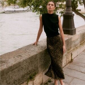 Favorite Daughter The Josie Satin Leopard Print Maxi Skirt Size Small