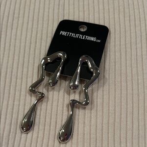 PRETTYLITTLETHING Silver Abstract Curved Drop Statement Earrings NWT