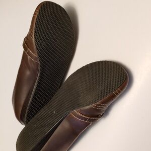 Chic brown flats with stylish stitching. Comfortable and versatile for daily wear. lovingly used