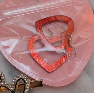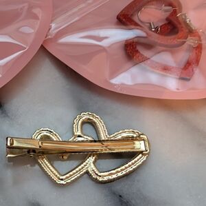 Heart-Shaped Gold and Silver Hair Clip & Heart XO & Red Heart Earrings Set