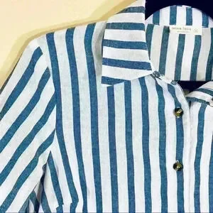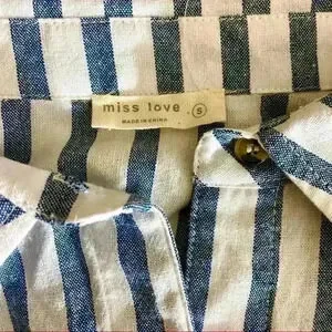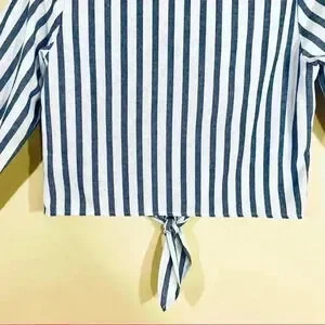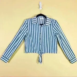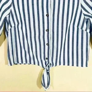 Miss Love Pinstripe Button Down Crop Top with Tie