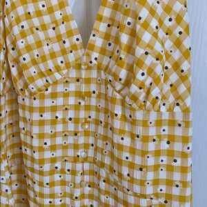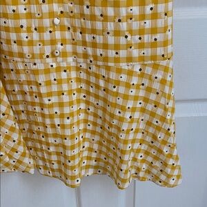 Charming mini dress with a vibrant yellow and white checkered pattern. Sleeveless design with a flattering V-neckline. Perfect for sunny days.