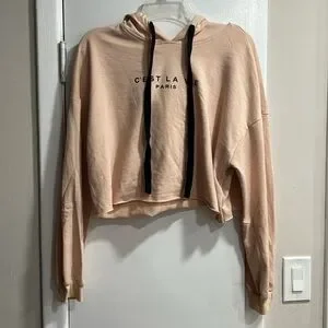 C' EST LA VIE PARIS Cropped Lightweight Hooded Sweater size Large