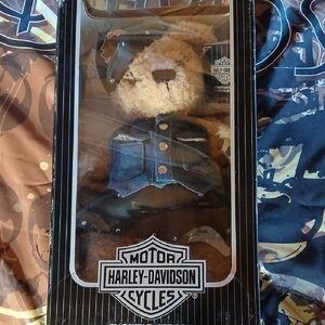 Vintage Harley Davidson from 1997. Charming bear in a blue denim vest. Ideal for Harley-Davidson fans.