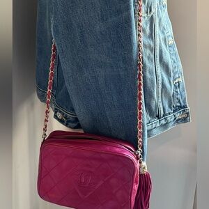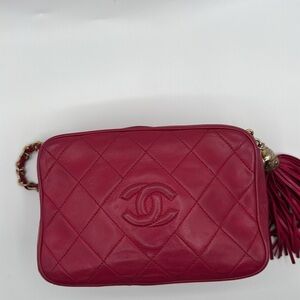 Discover the timeless elegance of the Chanel Camera Bag. This stylish piece, although featuring minor corner rubbing and discolored hardware, remains a statement accessory. We recommend a cleaning from a trusted cobbler to enhance its beauty further. The price reflects its condition, making it a fantastic addition to your collection without the premium cost.