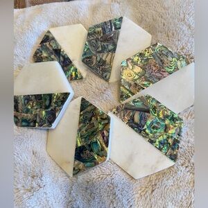 Anthropologie Hexagonal Abalone and Marble Coasters x6!