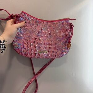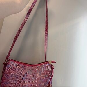 Elegant iridescent hot pink Shayna style Brahmin crossbody bag. It is the signature crocodile embossed design. Super cute and stylish.