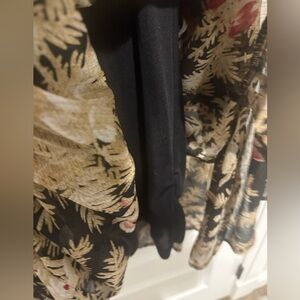 Floral dress from H&M. Tiered bottom. Black lining. 100% polyester. Had long neck ties at collar but were cut off. Not noticeable and does not affect functionality. Approximately 23 inches PTP and 36 inches long