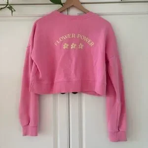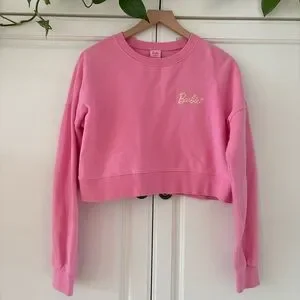 Chuu x Barbie Small Mattel Korean Pink Flower Power Cropped Sweatshirt