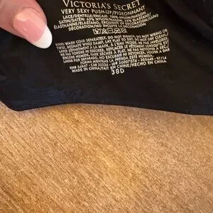 Chic black bra featuring sparkling silver accents. Adds elegance to your collection. This Victoria’s Secret black push up bra features beautiful lace detailing and subtle rhinestones that add the perfect touch of sparkle while giving amazing lift and shape.