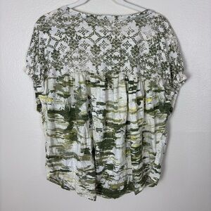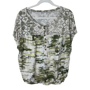 Anthropologie Pilcro Women's Tee Size M Oversized Ruched Henley Green Cotton
