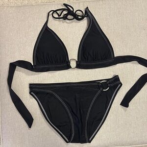 Isaac Mizrahi Black Bikini with Ring Detail Set Size S