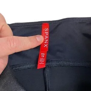 Spanx faux leather leggings in XS. The leggings are pre-owned and there are no stains or rips. Minor wear.