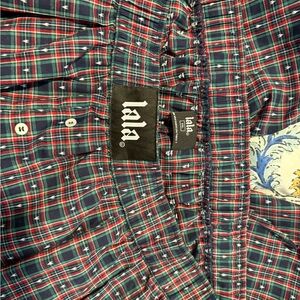 Dressed in Lala plaid barrel leg boxer pants. In excellent like new condition. Worn once, washed delicate and hang dried. Size chart in photos.