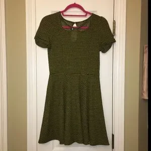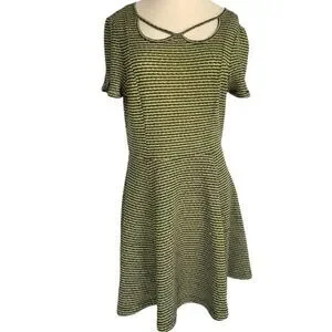 FP Beach knit dress black yellow green stripes Medium keyhole skater fit flare