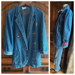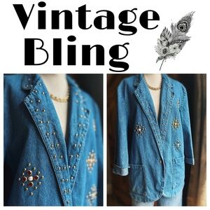 Vintage Studded Denim Blazer Jewel Embellished Western Boho Medium
